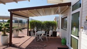 Le chiusure laterali con sistema ZIP rappresentano un elemento fondamentale per trasformare la pergotenda in uno spazio realmente fruibile anche nelle mezze stagioni.